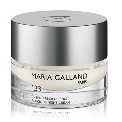 Vzácný noční krém Maria Galland 133 obsahuje komplex z mořských řas, aloe vera a Enteline®, jenž obnovují buněčnou strukturu, zklidňují a hydratují. Snižují citlivost pleti. Liposomy sójového lecitinu společně s bioceramidem udržují mladistvý vzhled a chrání bariéru pleti. Vitamín C působí proti volným radikálům, podporuje buněčnou obnovu a syntézu kolagenu. Vyživující komplex, bambucké máslo a jojobový olej vyživují a chrání. Vitamín E působí antioxidačně.